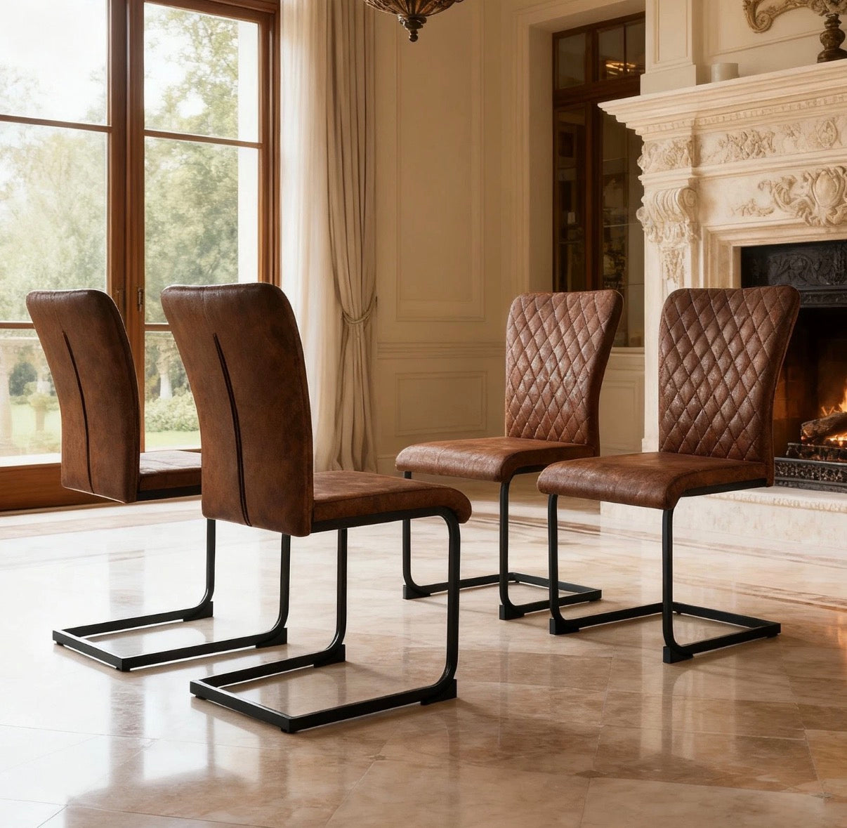 New Set of 4 pcs Mayfair Dining Chairs Metal Legs High Back Seat